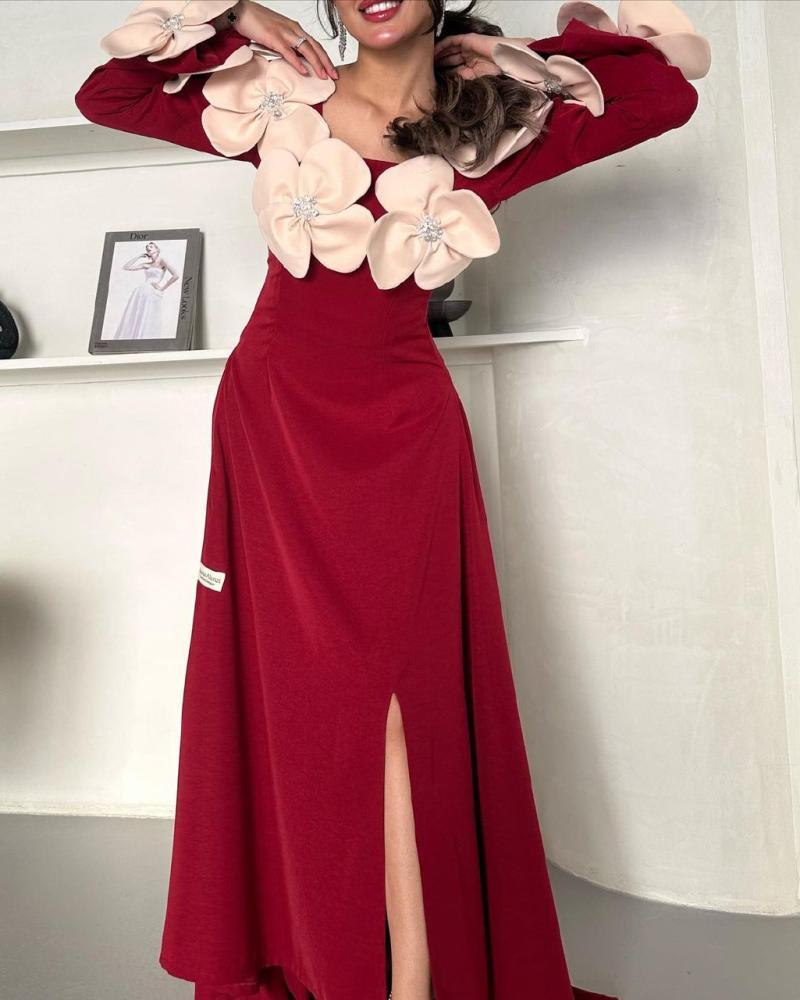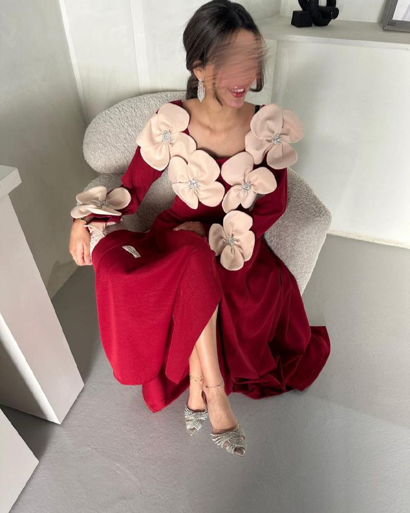 فستان أحمر ورود لحمي