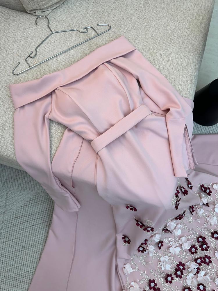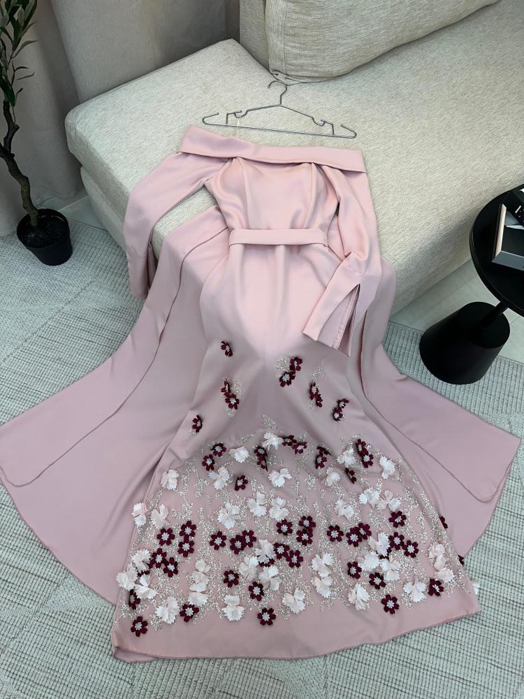 الوصف/ فستان سهره راقي يأتيكي باللون اللحمي بتصميم مميز ليعطيكي منظرا جميلا