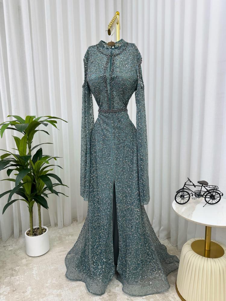 فستان سهره رااقي تطريز يدوي خرز كرستال / Mair Fashion