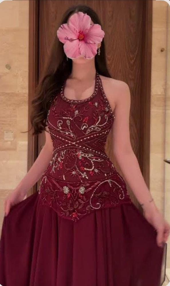 . التطريز: يدوي متقن بخيوط لامعة وخرز فاخر