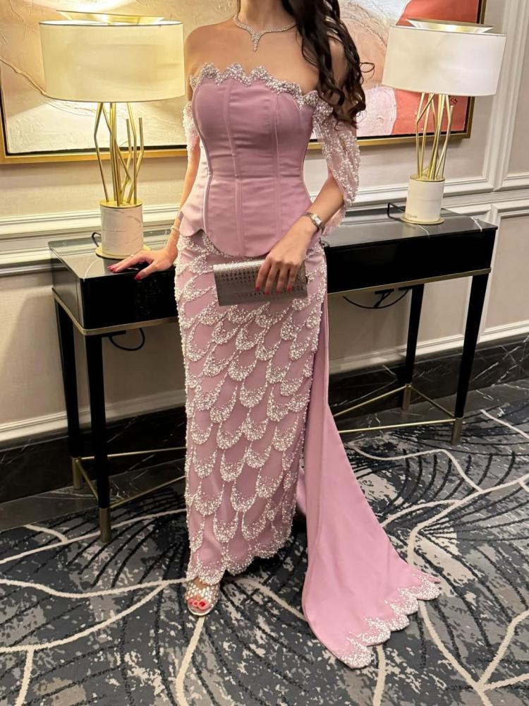 - فستان سهرة لحمي بتصميم باربي أنثوي فاااااااااااخر